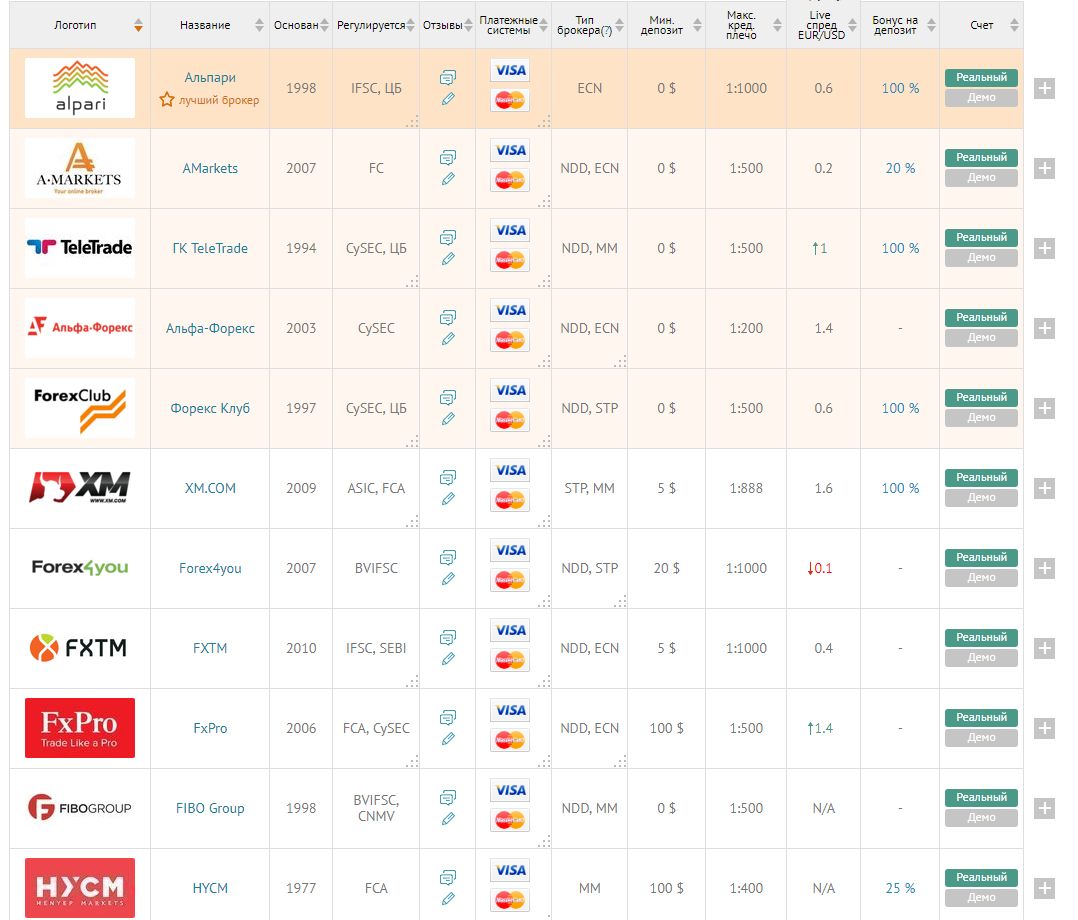 Обновлённый рейтинг Форекс-брокеров к 2018 году
